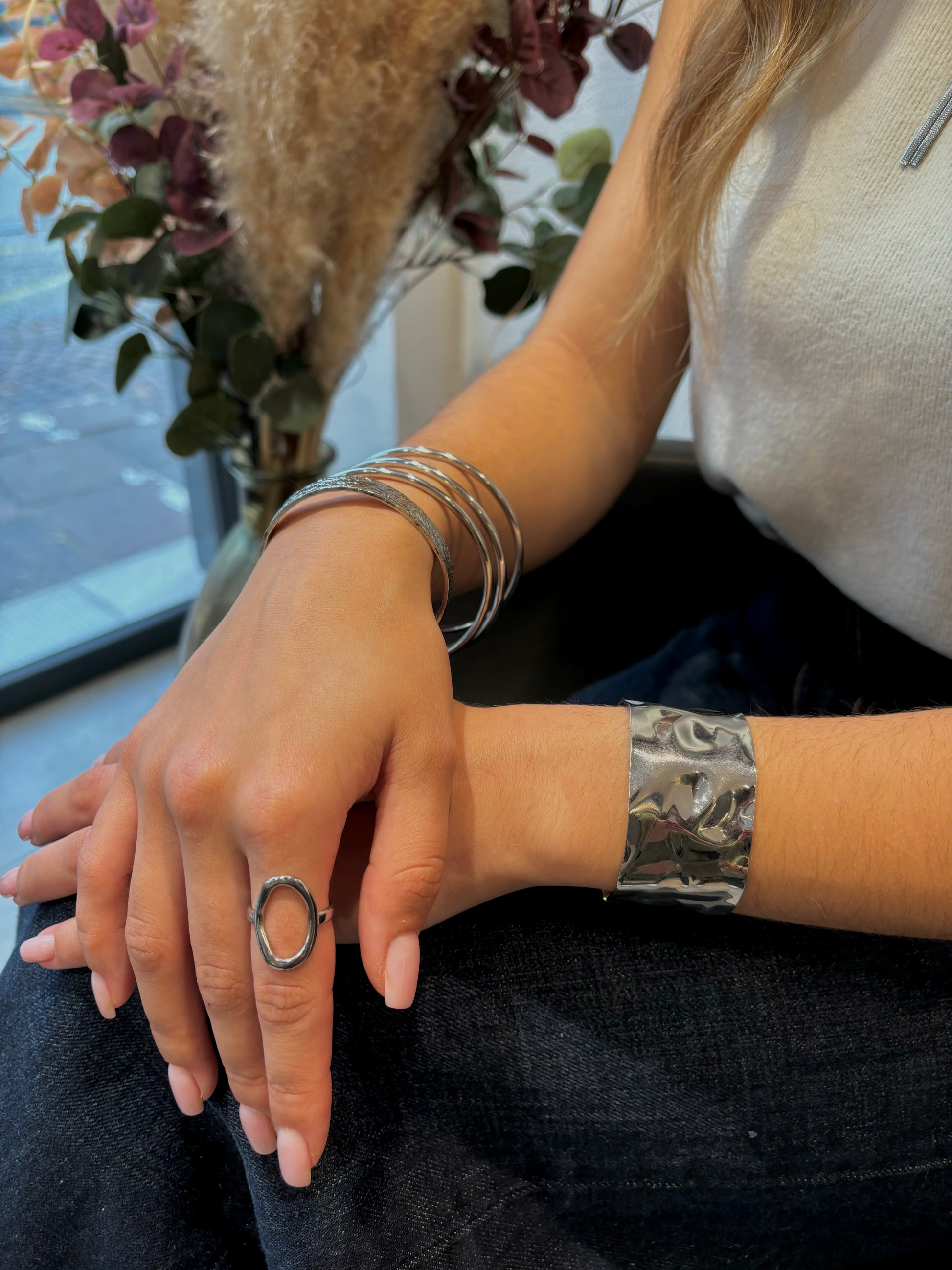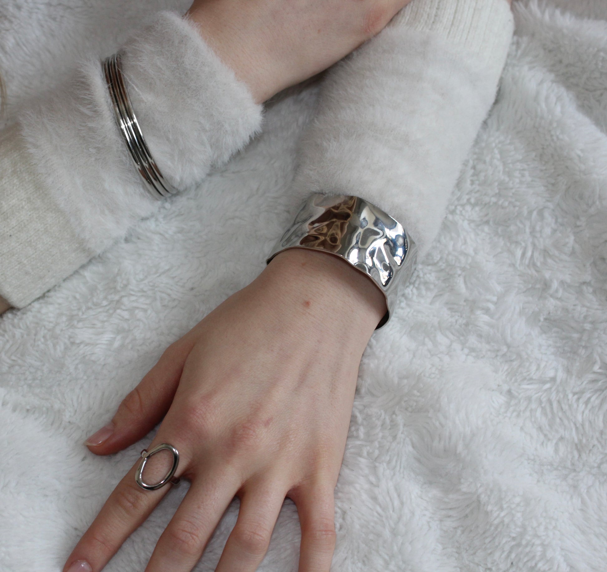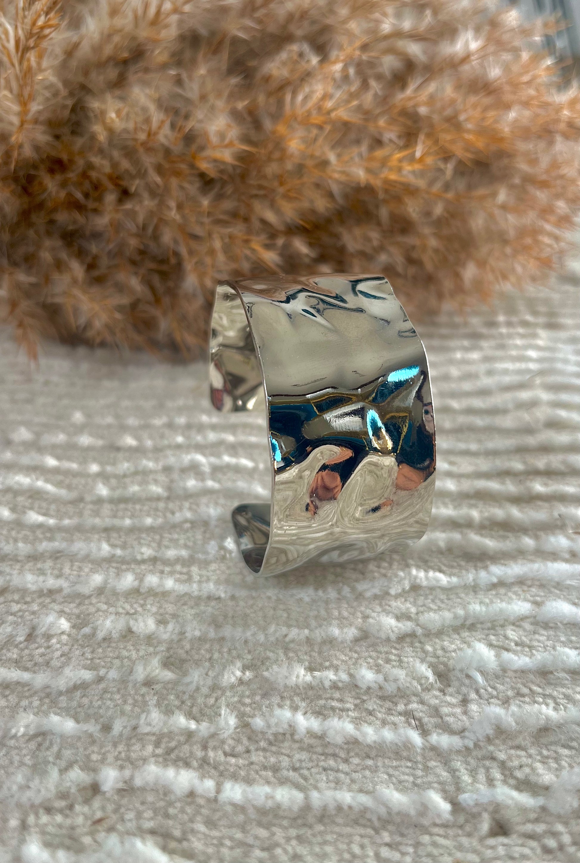 Élégante et audacieuse, notre manchette argenté en acier inoxydable allie modernité et raffinement. Son design martelé et sa brillance subtile en font une pièce maîtresse qui sublime chaque tenue. Hypoallergénique et résistante à l’eau, elle est parfaite pour un style chic et intemporel.